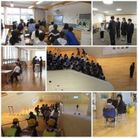 A組は音楽の授業で和太鼓に挑戦しています。選曲から叩くリズムまで自分たちで考えて、和太鼓を演奏しました。少ない人数で緊張しながらも、迫力ある演奏で、観客の先生方を楽しませてくれました。