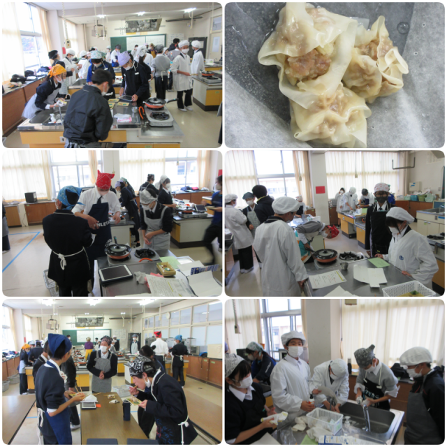 家庭科の授業では、調理実習でシュウマイを作りました。