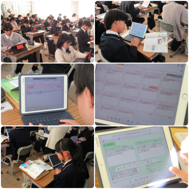 子どもたちはICT機器を上手に使いこなし、他の人の意見を見たり取り入れたりしながら、自分の考えをさらに深めていました。