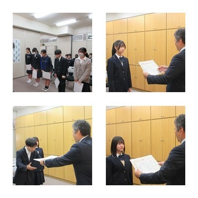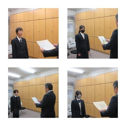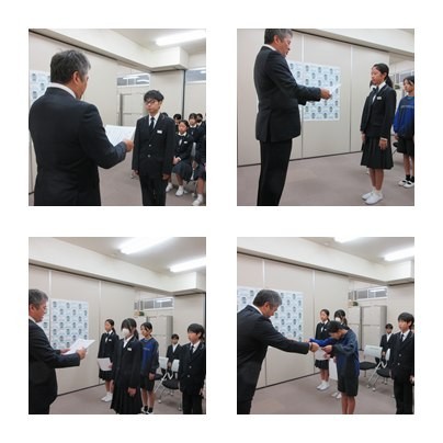 伝達表彰後に、生徒会役員後期認証式が行われました。