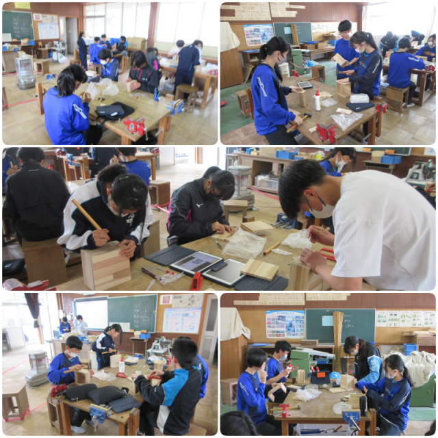 技術の授業では、製作してきた箱づくりがいよいよ完成間近となりました。