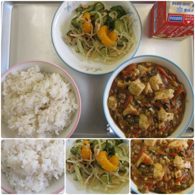 今日の給食は、『麦ごはん・牛乳・マーボー豆腐・中華サラダ』でした。