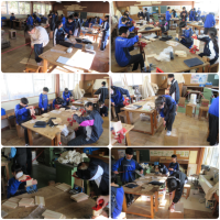 窯業室には、特別支援学級の生徒達が制作した皿や湯飲み、置物などが並んでいます。今年のテーマは「絵ごころ」です。これからも、9月のせともの祭の廉売市にむけて、作品制作を進めていきます。