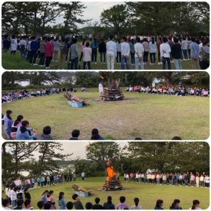 火の神より火を授かり、キャンプファイヤースタートです。