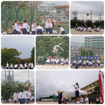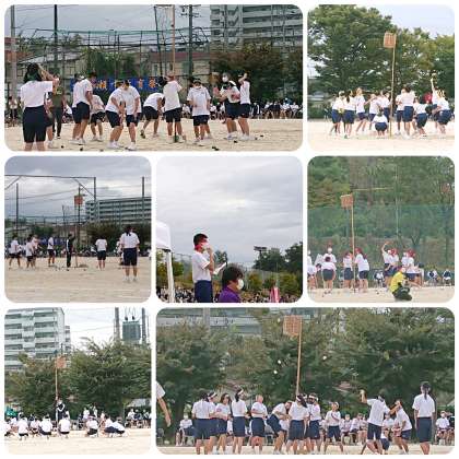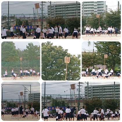 プログラムの2番目は代表選手による「玉入れ」です。1年生、3年生は6クラス、2年生は5クラス同時にかごにたまをいれ、数を競います。