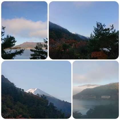 朝食が終わり、荷物整理と部屋の片付けをしています。富士山の頂上付近がきれいにみえます。