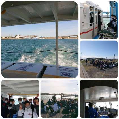 野外活動 前半組一色港出港(11月8日) 公開日 2021/11/08 更新日 2021/11/08 学校生活の様子 予定より少し早く、一色港を出港しました。風のため、船は結構ゆれ、水しぶきがあがります