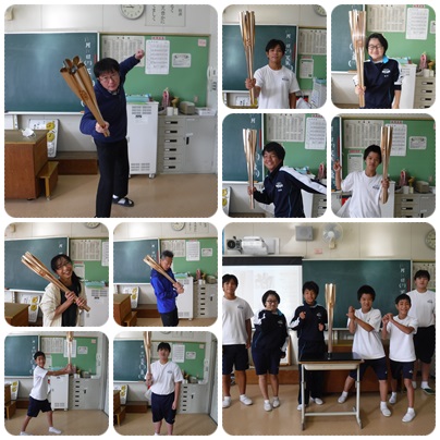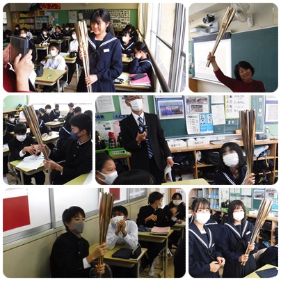 聖火トーチがG組・2年生の教室にやってきました。