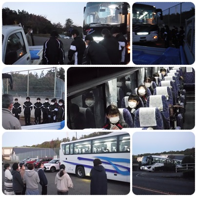 駅伝部は6時15分に西尾市の子どもの国に、ソフトテニス部男女は6時50分に一宮テニス場に向けて出発しました。