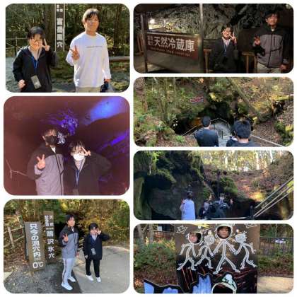 予定より到着が30分程遅れたので、予定を30分ずつ遅らせ、対応することになりました。G組は富岳風穴と鳴沢氷穴にいってから、富士急ハイランドで合流します。