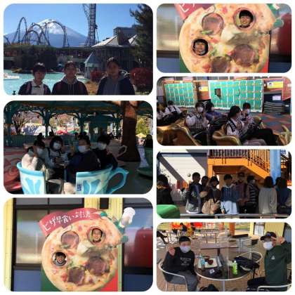 富士山とジェットコースターをバックに記念撮影ができます。撮影するときのみマスクをはずすことがあります。もう少し寒さが厳しいかと思っていましたが、意外に寒くはないようです。