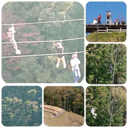 ロングジップラインの様子です。吊り橋と同じくらいの長さがあります。