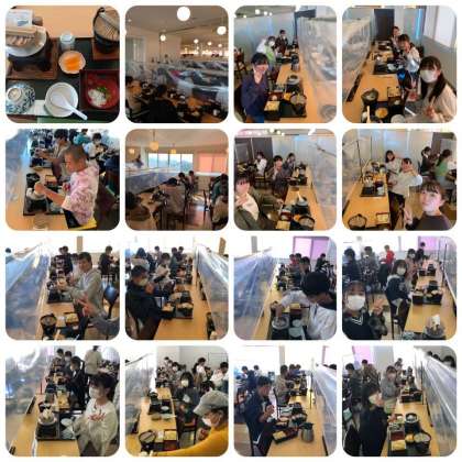 修学旅行最後の食事です。メインメニューはしらす釜まぶしです。