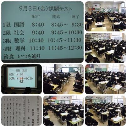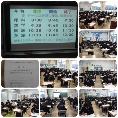 今日、1・2年生は5限までテストの日程になります。冬休みに取り組んだ課題がテスト範囲となります。みんな真剣な表情でテストに臨んでいます。(写真:上段1年生、中段2年生)