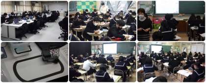 3年生は今日から通常の授業となります。中学校最後の学期のスタートです。落ち着いた雰囲気の中、素晴らしい姿勢で授業に参加しています。(写真:下段)