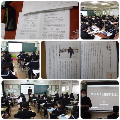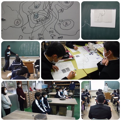 今日の授業の様子です。1,2年生では今日も課題テストの返却をしている学級もありました。3年生は学年末テストに向けての授業になります。2年生の理科では天気図の学習をしていました。G組では、窯業作品作りに取り組みました。