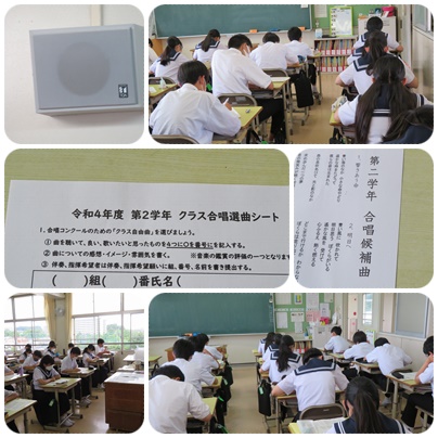 2年生は6限に、10月の合唱コンクールで合唱する曲の候補を聞き、選曲をしました。