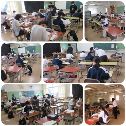 3年生学習会(7月14日) 公開日 2022/07/14 更新日 2022/07/14 学校生活の様子 懇談を待つ3年生が学習室で、自習をしています。先日もお伝えしたとおり、大学生の方や地域の方に支援をしていただきました。