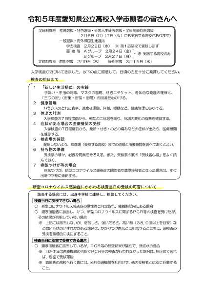 令和5年度愛知県公立高校入学志願者の皆さんへ