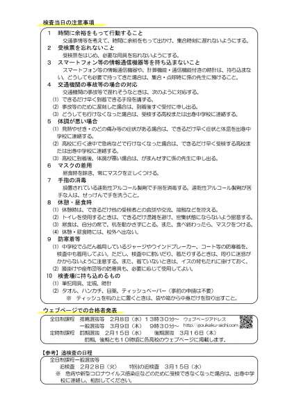 令和5年度愛知県公立高校入学志願者の皆さんへ(1月20日)