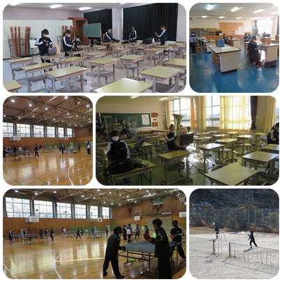 本日も体育館、校舎内、運動場、テニスコートにて、練習をしています。また、バスケットボール部などは大会に出場しています。