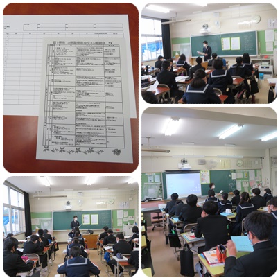 2月7日から行われる学年末テストの範囲表を見ながら、テスト勉強の計画を立てていきます。