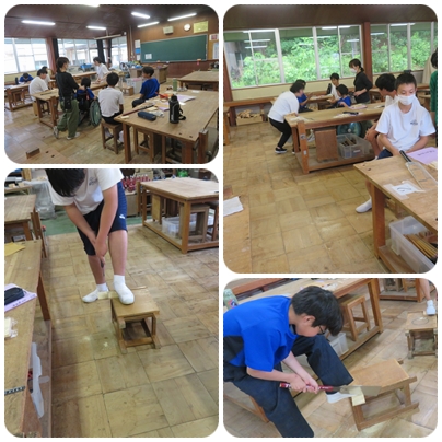 G組の技術では木材加工を行ってます。今日はのこぎり引きに挑戦していました。