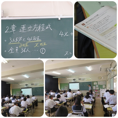 2年生の数学は、「連立方程式」の単元に入りました。今まで文字が一つだった方程式ですが、この連立方程式の単元では2つになります。今日はその基礎となる文字が2つある方程式の解の求め方を学習してました。