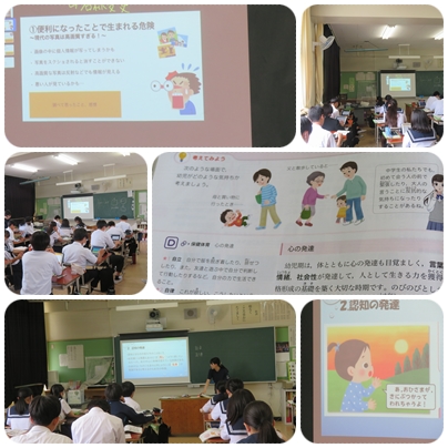 3年生の技術では、情報について学習しています。今日は、ネットやSNSの危険性について学習しました。家庭科では、「幼児の生活と家族」という単元で、「幼児の心の発達」について学習しました。