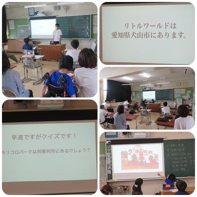 1年生は、これから予定している校外学習で出かける候補地について調べました。候補地は、モリコロパークやリトルワールドなどで、一人一つの候補地について、発表しました。