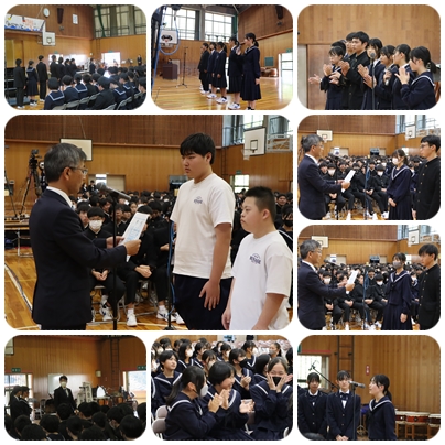 緊張の中、結果発表があり、最優秀賞、優秀賞それぞれ1学級に、賞状とトロフィが授与されました。そして、生徒会役員の終わりの言葉等で閉会となりました。
