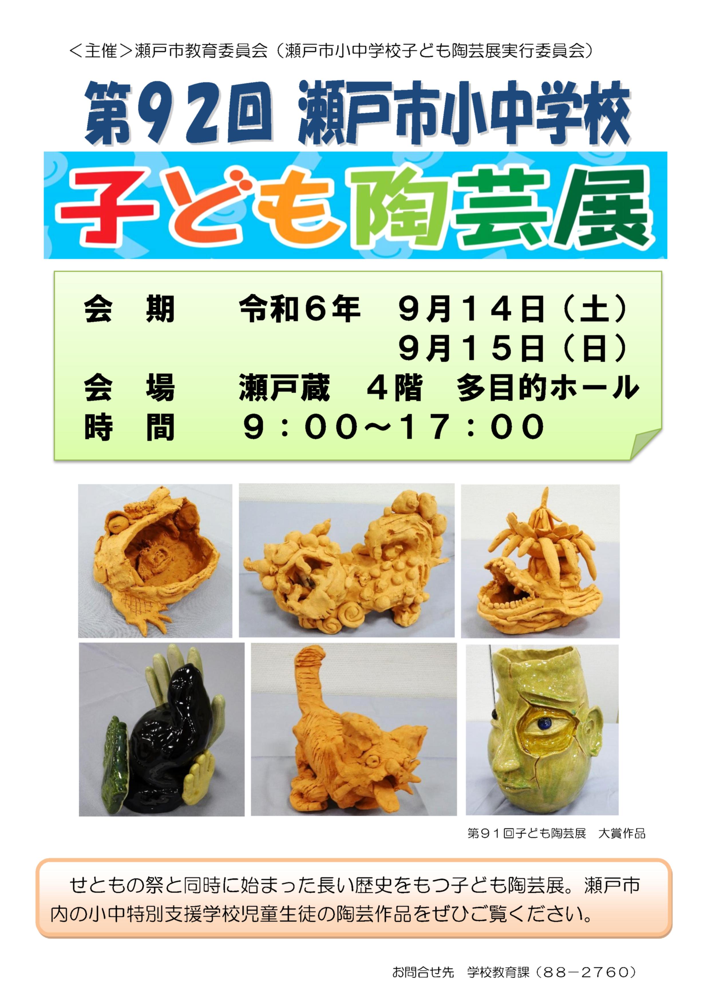 第92回瀬戸市小中学校 子ども陶芸展(9月13日)