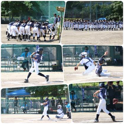 本日、尾張東部少年軟式野球地区大会の準決勝が長久手市民野球場で開催され、南山中学校と対戦しました。試合序盤は、取っては取られのシーソーゲームを繰り広げましたが、相手に4点をリードされ最終回を迎えました。1アウト満塁でタイムリーが出て1点を返しましたが、その後が続かず、6対3で惜敗しました。