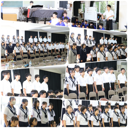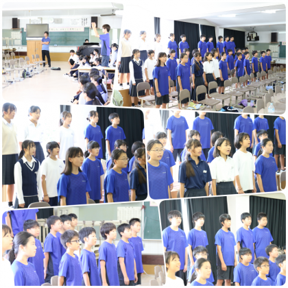 本日、3時間目に1年生と3年生の音楽の授業が別の部屋でそれぞれ行われていました。文化祭に向けての合唱練習を頑張りました。授業の最後に、1年生と3年生で合唱を発表し合い、お互いに良い刺激を受けました。どちらの学年も、先週に各学年で行われた中間発表(リハーサル)よりも数段素晴らしい合唱となっていました。本番がとても楽しみです。