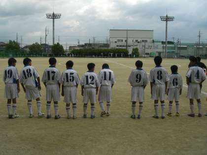9月15日(土)サッカー部の新人戦を夕刻、尾張旭市立旭中学校まで応援に行きました。今までの対戦結果は、水無瀬中対カワムラが0対1、旭中対カワムラが1対4でした。カワムラがリーグ1位決定、水無瀬中と旭中の勝者がリーグ2位となり、2位までが翌日の決勝トーナメントに出場できる状態でした。