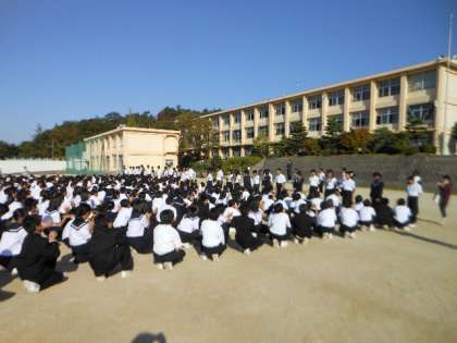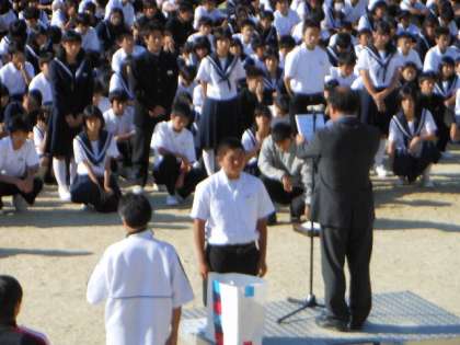 全校集会で、後期生徒会執行委員、後期室長、後期委員長の認証式を行いました。