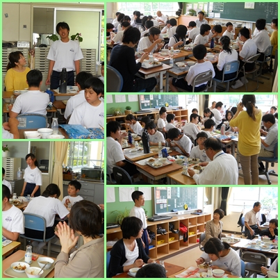 各学年の希望者が、G組のみんなと一緒に給食を食べる給食交流会が始まりました。今週は、2年生です。また、今日は商工会議所の山田さんも一緒に食べました。