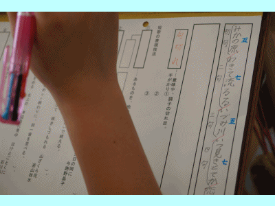 下段,国語。短歌の「区切れ」について学ぶ。先生は,生徒が知らない知識を,淡々と徹底する。今後,その知識をもとにして,深い思考が生まれていく。