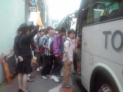 熱海駅ロータリーでバスに乗車します。ここで弁当とお茶を受け取ります。