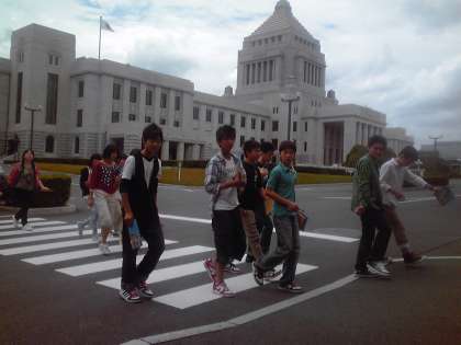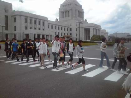本校の卒業生の衆議院議員鈴木じゅんじ氏が出迎えてくれました。国会議事堂内を見学して定番の記念写真を撮りました。
