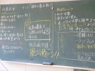 6月8日(土)東郷町立春木中学校でサッカーの東尾張リーグが行われました。対戦相手は強敵東郷中学校です。さすが強豪校だけあって、厳しいチェックがあり、また、スピードもありました。前半戦、互角に戦いましたが、終了間際、相手の絶妙のパスが通り、先制されてしまいました。ここで、がたがたと崩れてしまうのが今までの水無瀬中なのですが、さらに声が大きくなり闘志を感じました。後半は水無瀬中が終始押し気味に試合を進めましたが、残念ながら点には結びつきませんでした。しかし、朝一番の私へのあいさつ、試合中の声や粘り、試合終了後のあいさつ、どれをとってもすばらしいものがありました。とても満足しました。この後、大同高校と菊華高校を訪問して水無瀬中学校へ帰りました。学校へ帰ると昨日の雷雨でサッカーの練習が中止になり、ミーティングをしたことを教えてもらいました。黒板には目標や心構え、注意事項などが書いてありました。昨日のミーティングで今日の試合ができたのだと納得しました。すばらしいことです。ありがとう。