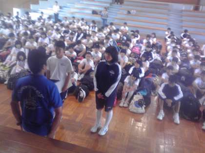 入所式 公開日 2013/06/09 更新日 2013/06/09 学校生活の様子 講堂で入所式が行われました。「美浜でサイコーの思い出を作ろう〜輝け!ぼくらのスマイル〜スローガンような野外活動を期待します。