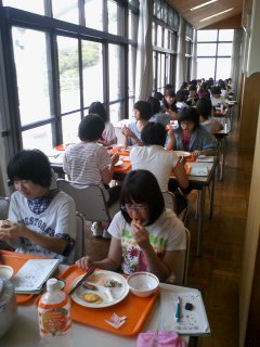 バイキング形式の朝食です。仲間との会話を楽しみながら会食が進みます。