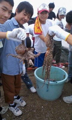 地引き網では、タイ、黒鯛、タコ、太刀魚などが取れました。