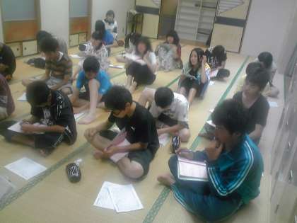 今日1日の反省と明日の注意事項の確認をします。みんなきちんとメモをとって各部屋につたえます。