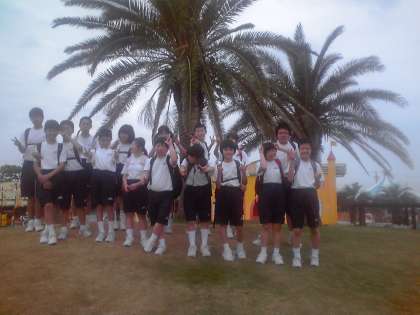 今からイルカショーに向かいます。全員で「ハイ!ポーズ」