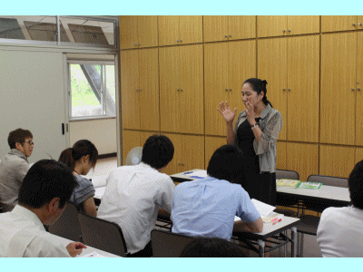 写真は,東海学園大学の准教授,石田妙美先生にお越しいただいて,さまざまなSSTの可能性についてご講義していただいているところです。