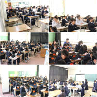男子は、初戦、知多市立知多東部中学校に勝ち、2回戦が常滑市立鬼崎中学校と対戦しました。接戦の末、代表者戦になり、水野君が開始早々1本を決めました。続く3回戦は全国大会の常連校の西尾市立平坂中学校でした。「強い。」「めっちゃ強い。」と生徒は感想を述べていました。感想通り、善戦むなしく破れてしまいました。強い見本を目の当たりにするのもいい経験です。