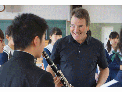 12日の吹奏楽部の練習には,普段からお世話になっている新井先生(元名フィル)が,ミュンヘン国立ゲルトナープラッツ劇場主席クラリネット奏者のロルフ・ウェーバーさんを連れて指導に来てくださいました。
