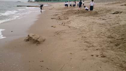 潮が満ちるにしたがって、くずれていく作品たち。 そのはかなさもまた、この活動の魅力かもしれません。